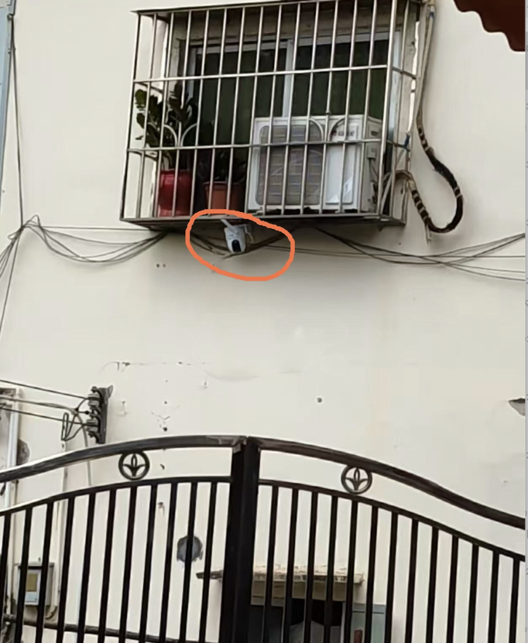 冯女士居住在雁洲村某巷11号,而安装摄像头的住户则是雁洲村某巷9号。两户人家门对着门。据冯女士及其家人介绍,对门邻居在围墙上安装了3个摄像头,其中中间的监控摄像头刚好对着她家院子,该摄像头不仅能拍摄到她家大门,还能拍摄到她家院子内和客厅的隐私空间。这让全家人感到很没有安全感。感觉每天全家人的出入行踪都被“盯上”,也给全家人带来很大的精神压力。