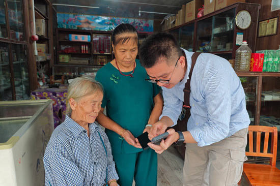 龙胜烟草工作人员在指导老年零售户使用移动支付。黎恒伶摄